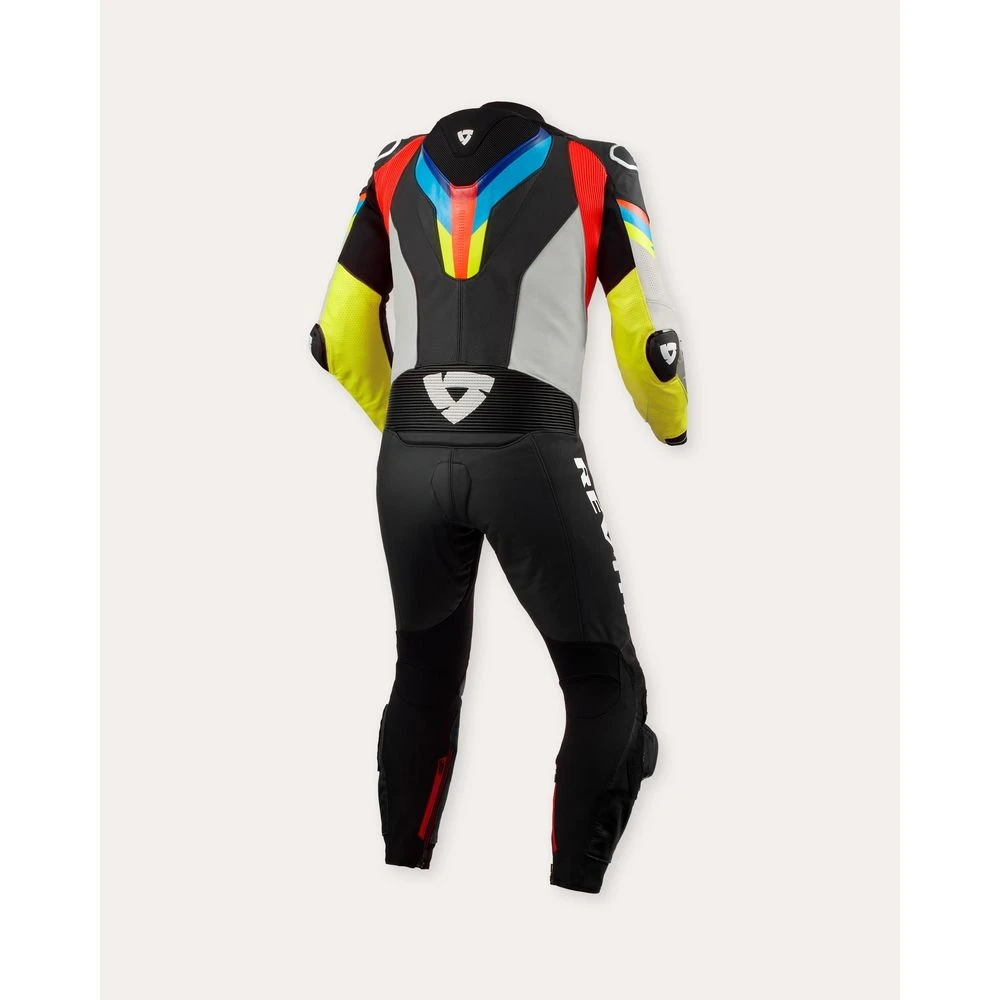 Geïnspireerd door digitale visuals uit de jaren 80 en 90, valt de Quantum 3 op door zijn opvallende graphics en levendige kleurenschema. Gemaakt van Monaco performance rundleer, 3D air mesh, PWR|Shell stretch en neopreen bij de kraag, zorgt dit pak voor duurzaamheid, flexibiliteit en optimale ventilatie.