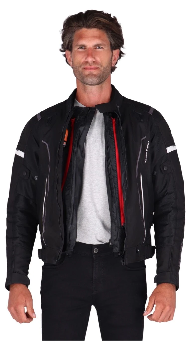 Tijdens hevige regenbuien is het Aquashell LTD membraan je beste vriend. Geen wolkje aan de lucht? Dan verwijder je het membraan en de thermovoering uit de motorjas en geniet je van goede ventilatie.